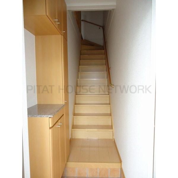 | 設備 | TVモニター付きインターホン/下駄箱/フローリング/クローゼット/バス・トイレ別/浴室乾燥機/シャワー/洗髪洗面化粧台/独立洗面台/室内洗濯機置場/温水洗浄便座/カウンターキッチン/プロパンガス/エアコン/BSアンテナ/照明器具/駐輪場/公営水道/下水 | ||||