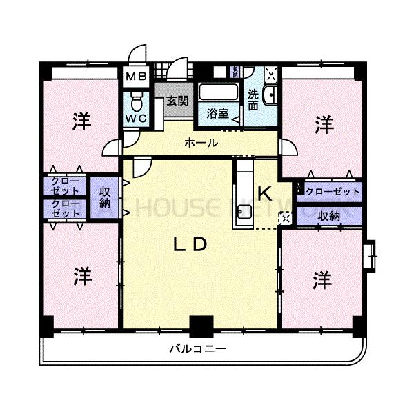 - 対面キッチンで追い炊き機能付のファミリー向け4LDKマンションタイプです。