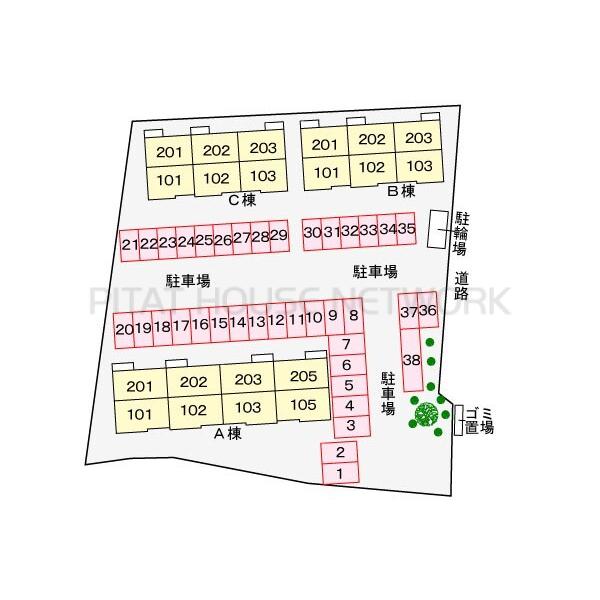 | 物件の特徴 | 角部屋/敷地内駐車場/専用庭/初期費用カード決済可/保証人不要/二人入居可 | ||||