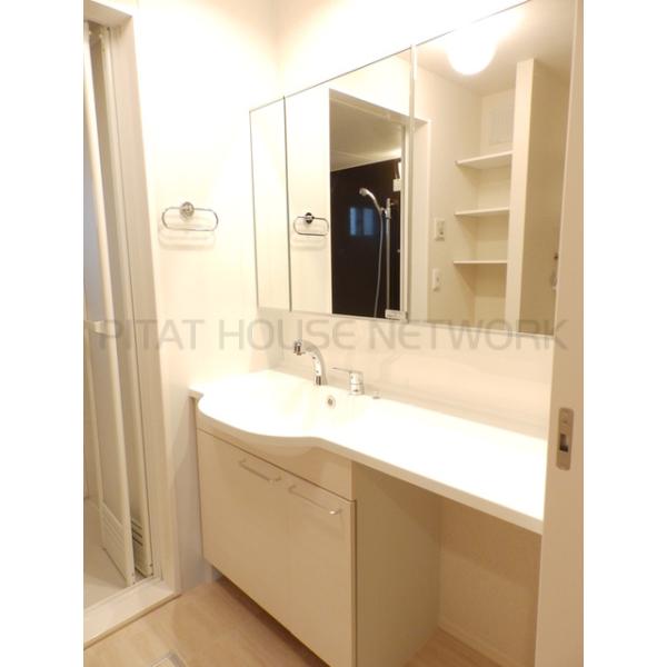 - 入口オートロック1坪風呂で広々、ゆったりと入浴できます。,W=1200の三面鏡洗面台です!インターネット無料です!(D.U-NET。回線工事後使用可)敷地内ゴミボックス有