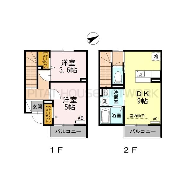- 対面キッチン♪1階2階ともバルコニー付き♪2階は両部屋共にウォークインクローゼット付き♪自治会への加入あり。カードキー、TVドアホン付きでセキュリティ―面の備えも安心。うれしいエアコン付きです。