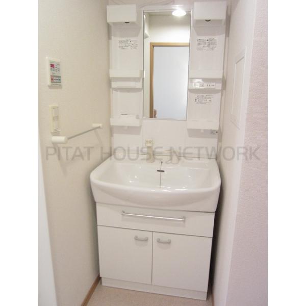 | 設備 | TVモニター付きインターホン/下駄箱/クローゼット/バス・トイレ別/浴室乾燥機/シャワー/洗髪洗面化粧台/独立洗面台/室内洗濯機置場/温水洗浄便座/カウンターキッチン/ガスコンロ(2口)/プロパンガス/エアコン/BSアンテナ/全居室収納/照明器具/駐輪場/公営水道/下水 | ||||