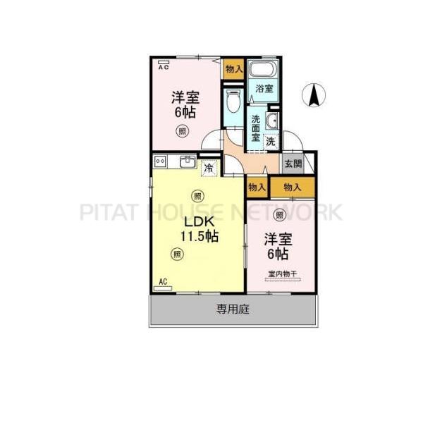 | 設備 | 宅配ボックス/下駄箱/クローゼット/バス・トイレ別/洗髪洗面化粧台/室内洗濯機置場/温水洗浄便座/プロパンガス/エアコン/インターネット対応/CATV/床下収納/エアコン2台以上/カードキー/駐輪場/火災警報器(報知機)/公営水道 | ||||